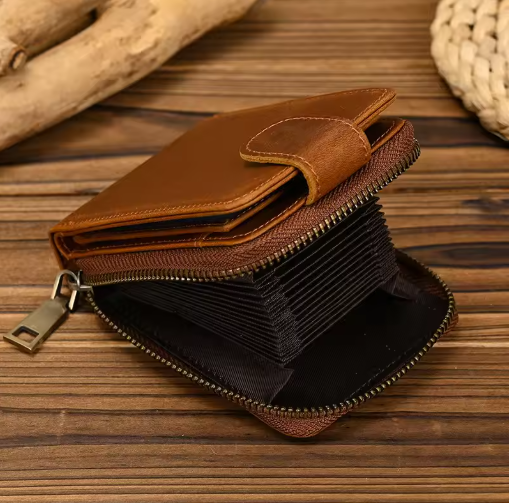 Lederetui mit Reißverschluss für Herren ⎜ Kompaktes Portemonnaie mit RFID-Schutz und großzügigem Kartenplatz