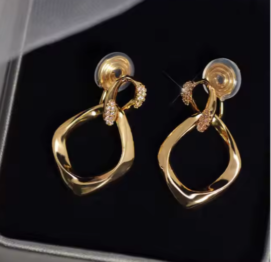 Die vergoldeten Ohrringe bieten eine moderne, elegante Alternative zu Standarddesigns. Der sanfte Schwung der Form schmeichelt dem Gesicht und passt zu offenen sowie hochgesteckten Frisuren. Die funkelnden Details verleihen Ihrem Auftritt einen Hauch Glamour, ohne aufdringlich zu wirken – perfekt für Events, bei denen Sie sich stilvoll und selbstbewusst zeigen möchten.